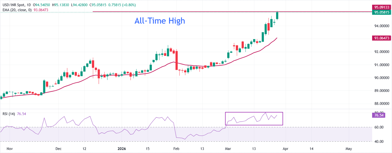 การวิเคราะห์ทางเทคนิค: USD/INR ทะลุเหนือ 95.00