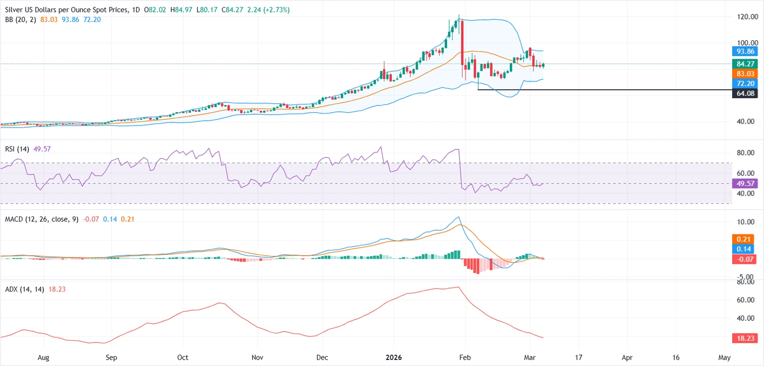 ในขณะที่เขียนบทความนี้ XAG/USD ซื้อขายอยู่ที่ระดับ 84.27 ดอลลาร์ เพิ่มขึ้นเกือบ 2.73% ในวันเดียวกัน หลังจากดีดตัวขึ้นจากระดับต่ำสุดรายวันใกล้ 80.17 ดอลลาร์