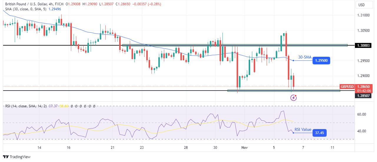 การทะลุต่ำกว่า 22-SMA ทำให้ตลาดหมีทดสอบระดับแนวรับ 1.2850 อีกครั้ง หากตลาดหมียังคงกระตือรือร้นและ RSI อยู่ต่ำกว่า 50 ราคาจะทำจุดต่ำสุดใหม่ที่ต่ำกว่า 1.2850 โดยดำเนินต่อไปตามแนวโน้มขาลงก่อนหน้านี้