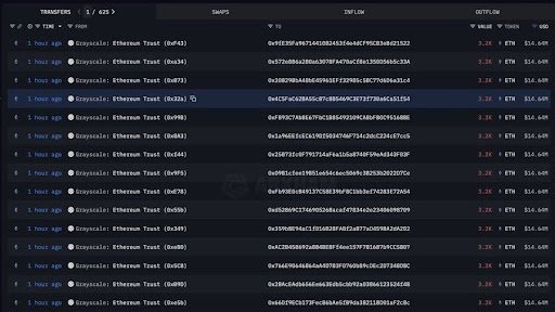 ใน x โพสต์Cryptogoos นักวิเคราะห์บนห่วงโซ่ได้นำการพัฒนาที่สำคัญในพื้นที่ crypto ของสถาบัน มีรายงานว่า Grayscale กำลังเตรียมที่จะเดิมพัน Ethereum Holdings ขนาดใหญ่ แม้ว่าจะยังไม่ได้รับการยืนยันการเคลื่อนไหวดังกล่าวซึ่งถูกตั้งค่าสถานะโดยสายโซ่ ข้อมูล หลังจากการถ่ายโอนมากกว่า 40,000 ETH เป็นสัญญาณที่สำคัญของกลยุทธ์การพัฒนาของเกรย์ซอลและตัวเปลี่ยนเกมที่มีศักยภาพสำหรับตลาด ETH