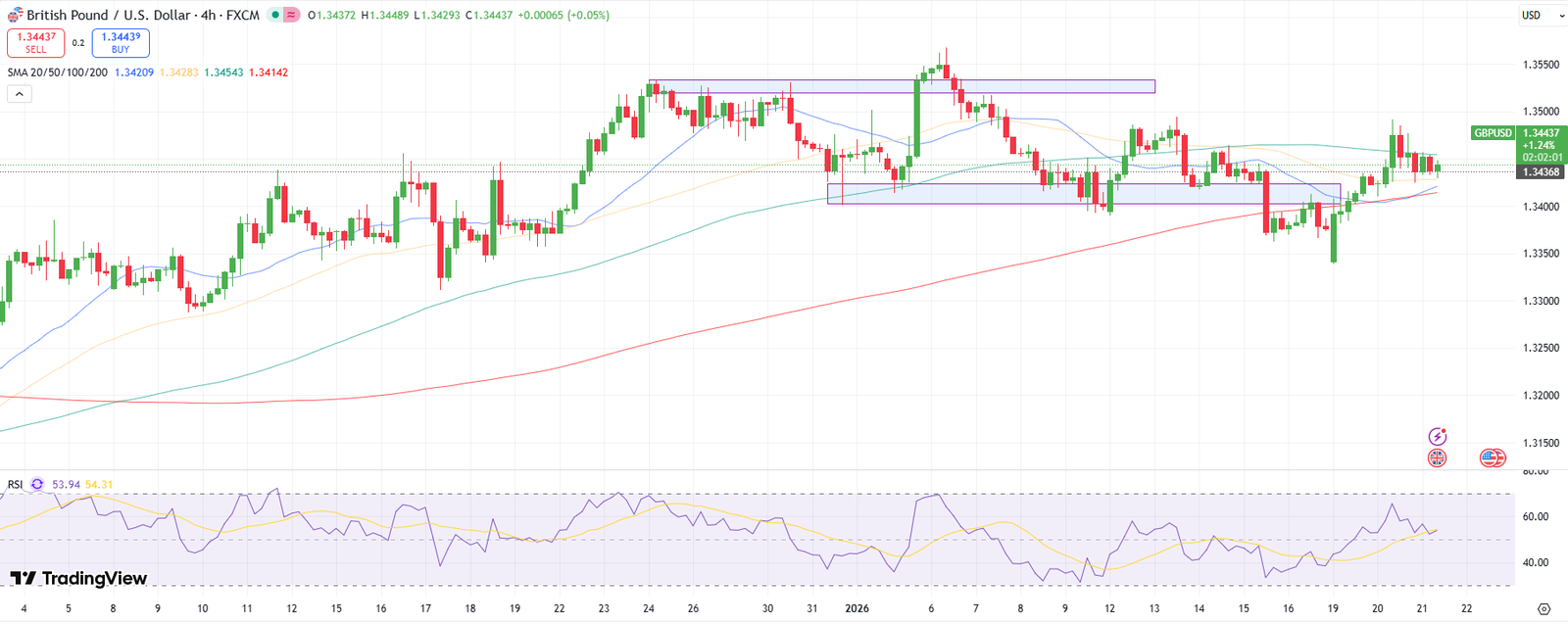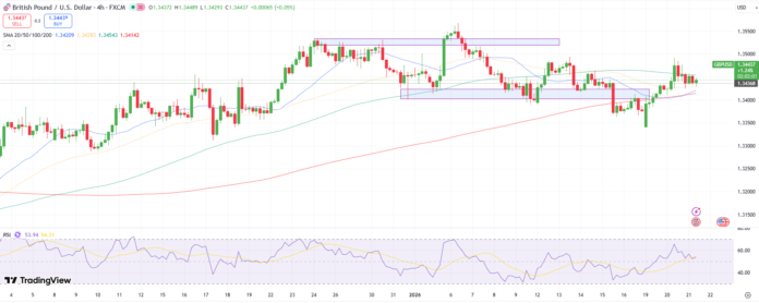RSI ยังคงทรงตัวเหนือ 50.0 ซึ่งบ่งบอกถึงโมเมนตัมที่ลดลง ทั้งคู่กำลังมองหาตัวเร่งปฏิกิริยาที่จะแยกตัวออกจากการรวมตัว เป้าหมายขากลับอยู่ที่ 1.3500 ในขณะที่ขาลงอาจพบแนวรับชั่วคราวใกล้ 1.3400 ก่อน 1.3360