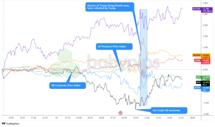 ตลาดนำทางธีมหลายรูปแบบในวันพุธเนื่องจากผู้ค้าเล่นกลค็อกเทลของความประหลาดใจเงินเฟ้อและดราม่าของเฟด การกระทำที่ยิ่งใหญ่ของวันล้อมรอบรายงานโดยไม่ระบุชื่อของทรัมป์อาจยิงเก้าอี้เฟดพาวเวลล์ส่งระลอกคลื่นผ่านตลาดสำคัญทั้งหมดและสร้างผลลัพธ์ที่หลากหลายจากความสัมพันธ์ของตลาดตามปกติ