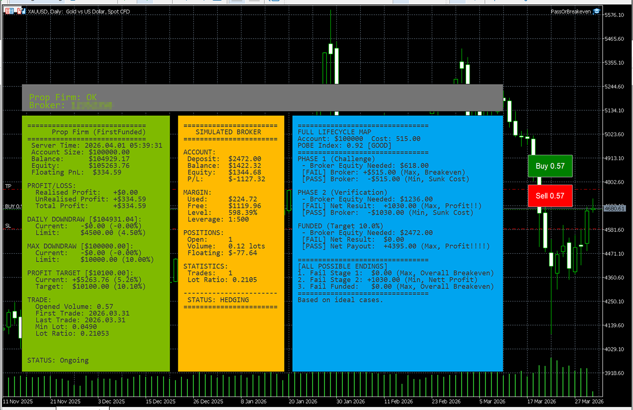 เทรดเดอร์หลายรายถือว่างานของ POBE เสร็จสิ้นเมื่อผ่านระยะที่ 1 และระยะที่ 2 และได้รับบัญชีที่ได้รับเงินทุนแล้ว นี่เป็นความเข้าใจผิดที่พบบ่อย การผ่านระยะที่ 1 และระยะที่ 2 หมายความว่าบัญชีนายหน้ามีสถานะที่ตรงกันข้ามตลอดทั้งระยะการประเมินและมีต้นทุนสะสมสะสม ระยะที่ได้รับทุนคือช่วงที่ต้นทุนจมนั้นได้รับการกู้คืน ไม่ว่าจะผ่านกำไรที่ได้รับทุนซึ่งชดเชยทั้งหมด หรือผ่านจุดคุ้มทุนที่ปิดวงจรชีวิตโดยไม่มีขาดทุนสุทธิ การดำเนินระยะที่ได้รับทุนสนับสนุนผ่าน POBE ไม่ใช่ทางเลือก แต่เป็นเลกสุดท้ายที่เสร็จสิ้นการป้องกันความเสี่ยง หากไม่มีสิ่งนี้ ต้นทุนที่จมหายไปจากทั้งสองขั้นตอนการประเมินจะยังคงไม่ได้รับการกู้คืน
