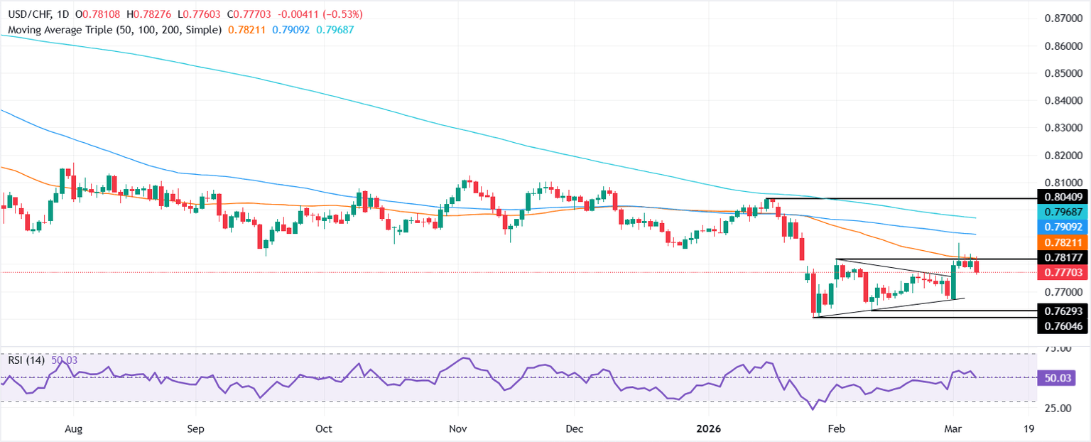 ในทางกลับกัน หาก USD/CHF กลับมาที่ 0.7800 คาดว่าจะมีการทดสอบการแกว่งตัวสูงสุดในวันที่ 3 มีนาคมที่ 0.7878 สำหรับความแข็งแกร่งที่เพิ่มขึ้น พื้นที่ถัดไปที่น่าสนใจคือ 100-day Easy Transferring Common (SMA) ที่ 0.7905