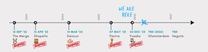 วันที่สำหรับการอัปเกรดนี้จะขึ้นอยู่กับความคืบหน้าของ Glamsterdam ในอีกไม่กี่เดือนข้างหน้าเป็นอย่างมาก