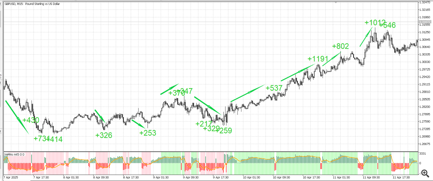 ในกรณีส่วนใหญ่ที่แน่นอนหลังจากสัญญาณของตัวบ่งชี้ VEMAS ราคาไปในทิศทางที่เราต้องการ