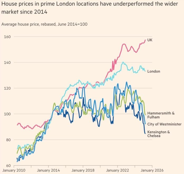 เป็นเวลาหลายปีที่ชาวอังกฤษร่ำรวยเป็นเวลาหลายปี ผู้ซื้ออสังหาริมทรัพย์ ได้ถูกปิดออกจาก Prime London Property แต่ราคาที่ซบเซาในเคนซิงตันและเชลซีมานานหลายทศวรรษอาจทำให้แสงสว่างของแสง