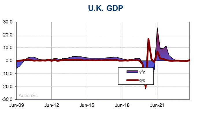 เศรษฐกิจสหราชอาณาจักรฟื้นตัวในไตรมาสแรกของปีจากก ภาวะถดถอยทางเทคนิคเล็กน้อย จนถึงครึ่งหลังของปี 2023 ข้อมูลที่เผยแพร่เมื่อสัปดาห์ที่แล้วแสดงให้เห็นว่า GDP ขยายตัว 0.6% q/q แม้ว่าลดลง -0.3% ในไตรมาสที่ 4 และ -0.1% ในไตรมาสที่ 3 ของปีที่แล้ว กิจกรรมสูงกว่าไตรมาสแรกของปี 2566 บ่งชี้ว่ากิจกรรมกำลังแข็งแกร่งขึ้น แม้ว่าจะมีข้อจำกัดทางการเงินก็ตาม