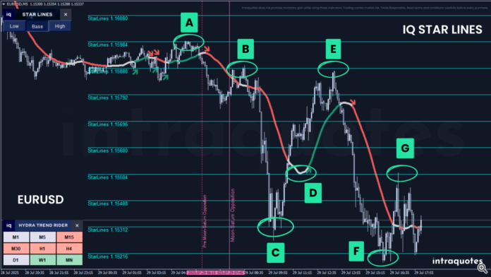 นี่คือตัวอย่างแผนภูมิสดของการใช้ Hydra Pattern Rider พร้อมกับ IQ Starlines