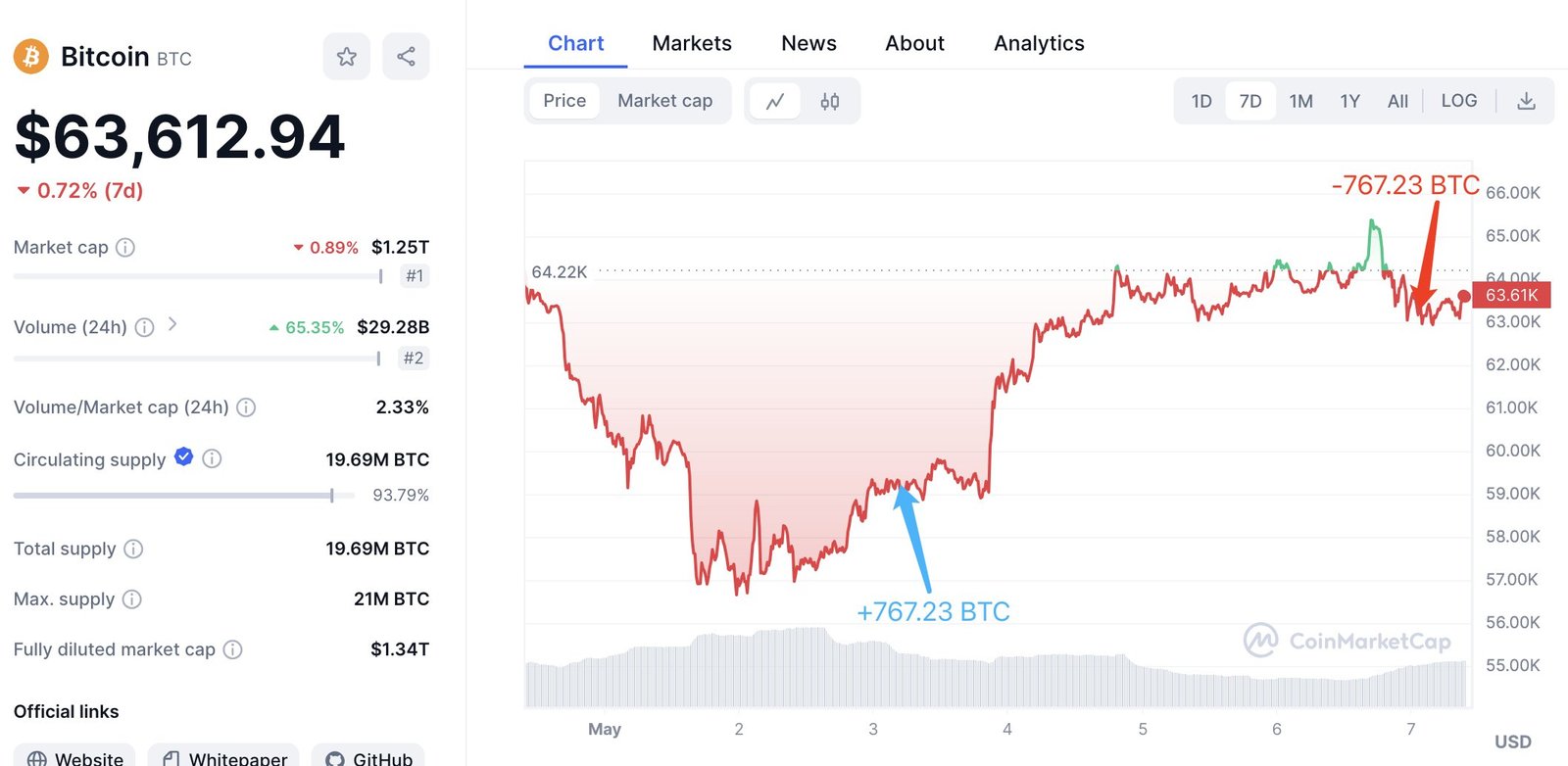 “สร้างรายได้มากกว่า 3 ล้านเหรียญสหรัฐในเวลาเพียงสี่วัน! วาฬที่ซื้อ BTC ที่จุดต่ำสุด (วันที่ 3 พฤษภาคม) ได้ฝาก 767 BTC ($48.46 ล้าน) ให้กับ Binance เพื่อหากำไร (ในวันที่ 6 พฤษภาคม) หลังจากที่ตลาดร่วงลง เขาได้ถอนเงิน 767 BTC ($45.44 ล้าน) ที่ $59,226 BTC จาก Coinbase เมื่อวันที่ 3 พฤษภาคม