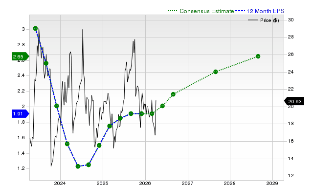 แผนภูมิด้านล่างแสดงวิวัฒนาการของประมาณการกำไรต่อหุ้นของ Zacks Consensus ล่วงหน้า 12 เดือน: