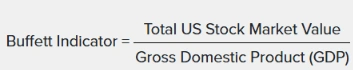 วิธีแรกและสำคัญที่สุดในการตัดสินการประเมินราคาหุ้นที่สูงเกินจริงคือตัวบ่งชี้บัฟเฟตต์ ตามชื่อของมัน มาตรการนี้เสนอโดย Warren Buffett ตำนานการลงทุน เพื่อเป็นการวัดว่าตลาดหุ้นของอเมริกามีมูลค่าเท่าใดเมื่อเทียบกับขนาดเศรษฐกิจของประเทศ กล่าวคือ จีดีพี. คุณสามารถคำนวณได้โดยการหารมูลค่ารวมของตลาดหุ้นด้วยมูลค่า GDP ของสหรัฐอเมริกา