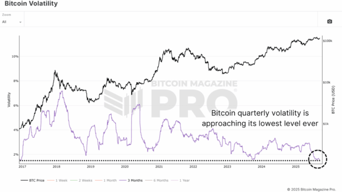 อีกปัจจัยหนึ่งคือ ความผันผวนของ Bitcoin– ความผันผวนรายไตรมาสของ Bitcoin ลดลงอย่างต่อเนื่อง ในขณะที่สิ่งนี้จะช่วยลดอัตราต่อรองของท็อปส์ซูระเบิดที่รุนแรง แต่ก็รองรับโปรไฟล์การลงทุนระยะยาวที่มีสุขภาพดีขึ้น ความผันผวนที่ลดลงหมายถึงการไหลเข้าของเงินทุนที่จำเป็นในการเคลื่อนย้ายราคาเพิ่มขึ้น แต่ก็ทำให้ Bitcoin น่าสนใจยิ่งขึ้นสำหรับสถาบันที่ต้องการรับการปรับความเสี่ยง