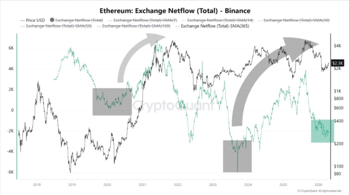 ในโพสต์ Quicktake บนแพลตฟอร์ม CryptoQuant CryptoOnchain เปิดเผย โทเค็น Ether จำนวนมากไหลออกจาก Binance ซึ่งเป็นการแลกเปลี่ยนสกุลเงินดิจิตอลที่ใหญ่ที่สุดในโลกตามปริมาณการซื้อขาย การสังเกตการณ์ออนไลน์นี้อิงตาม Easy Shifting Common 365 วันของ Ethereum Change Netflow บน Binance