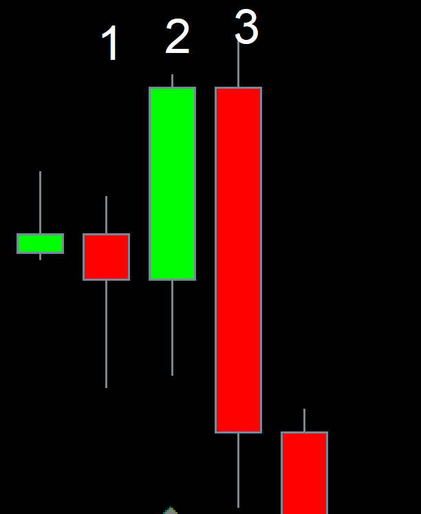 - Downward Influence Bar – แท่งราคาปิดต่ำกว่าราคาต่ำสุดของแท่งก่อนหน้า