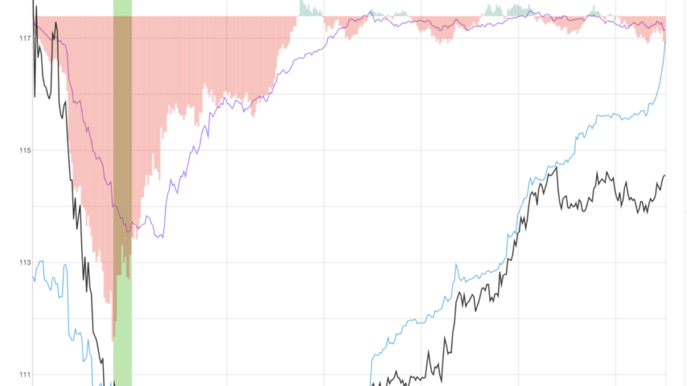 ราคาในช่วงเวลาของการไหลเข้าของพลังงานคือ $ 109.78– ผลตอบแทนในราคาที่สูง ($ 114.70) และราคาปิด ($ 114.54) หลังจากการไหลเข้าของพลังงานตามลำดับ 4.5% และ 4.3%