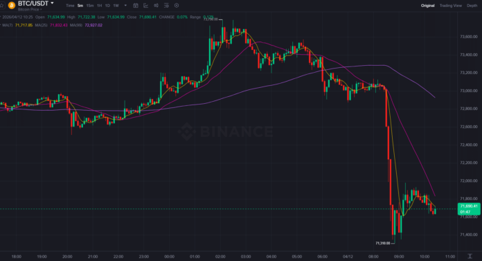 Bitcoin ลดลง 2% ในเย็นวันเสาร์ โดยลดลงจากสูงกว่า 73,000 ดอลลาร์เหลือประมาณ 71,310 ดอลลาร์ หลังจากที่สหรัฐฯ และอิหร่านล้มเหลวในการตกลงเงื่อนไขในระหว่างการเจรจาที่มีเดิมพันสูงในกรุงอิสลามาบัด ประเทศปากีสถาน