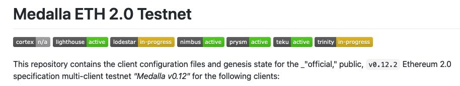 นี่เป็นก้าวสำคัญจาก Altona ในแง่ที่ว่า Medalla เป็นเครือข่ายทดสอบ สร้างขึ้นเพื่อ และ ดูแลโดย ชุมชน เครือข่ายทดสอบแบบหลายไคลเอนต์ก่อน Medalla ถือเป็น “devnets” ซึ่งดำเนินการโดยทีมลูกค้าและสมาชิกของ EF เป็นหลัก (ดู ส่วน Altona ของโพสต์ล่าสุดของฉัน สำหรับคำอธิบายที่สมบูรณ์ยิ่งขึ้น) แต่ด้วยการเปิดตัวเครือข่ายนี้ ความเสถียรและสุขภาพของห่วงโซ่จะเกือบทั้งหมดอยู่ในมือของชุมชน (มือของคุณ ✋🤞🤟!)