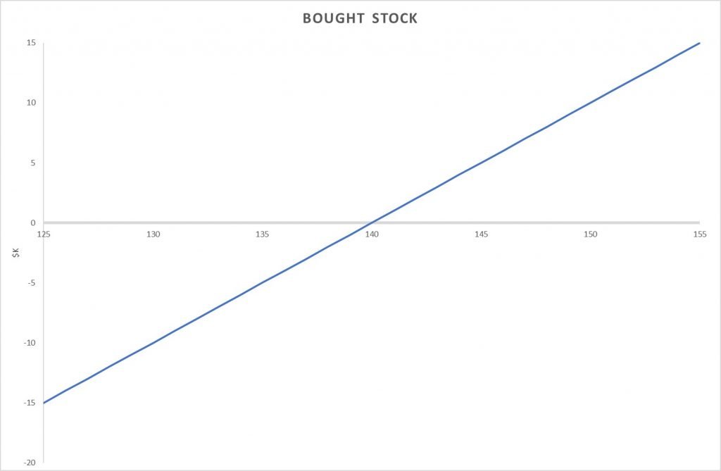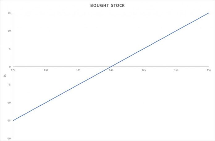 สังเกตว่าสิ่งนี้จำกัดการขาดทุนไว้ที่ 15 ดอลลาร์ต่อหุ้น (หากหุ้นต่ำกว่า 130 ดอลลาร์)