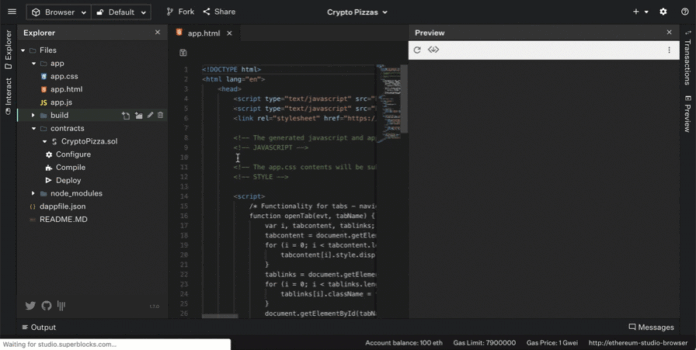 Ethereum Studio เป็นโอเพ่นซอร์สและรหัสทั้งหมดพร้อมใช้งาน ที่นี่– เราจะปรับปรุงสตูดิโออย่างต่อเนื่องเมื่อเวลาผ่านไปและมีการปรับปรุงหลายอย่างที่วางแผนไว้สำหรับ v 1.1 หากคุณต้องการมีส่วนร่วมเรียนรู้วิธีการมีส่วนร่วม ที่นี่– หากคุณต้องการให้ข้อเสนอแนะ กรุณากรอกแบบสำรวจสั้น ๆ นี้–