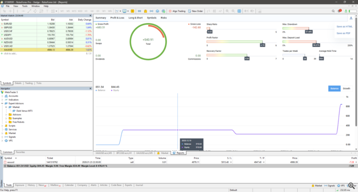 อัปเดตบัญชีสด: $310 → $851 ใน 54 วัน | เอเพ็กซ์ Drawdown เป็นศูนย์ EA