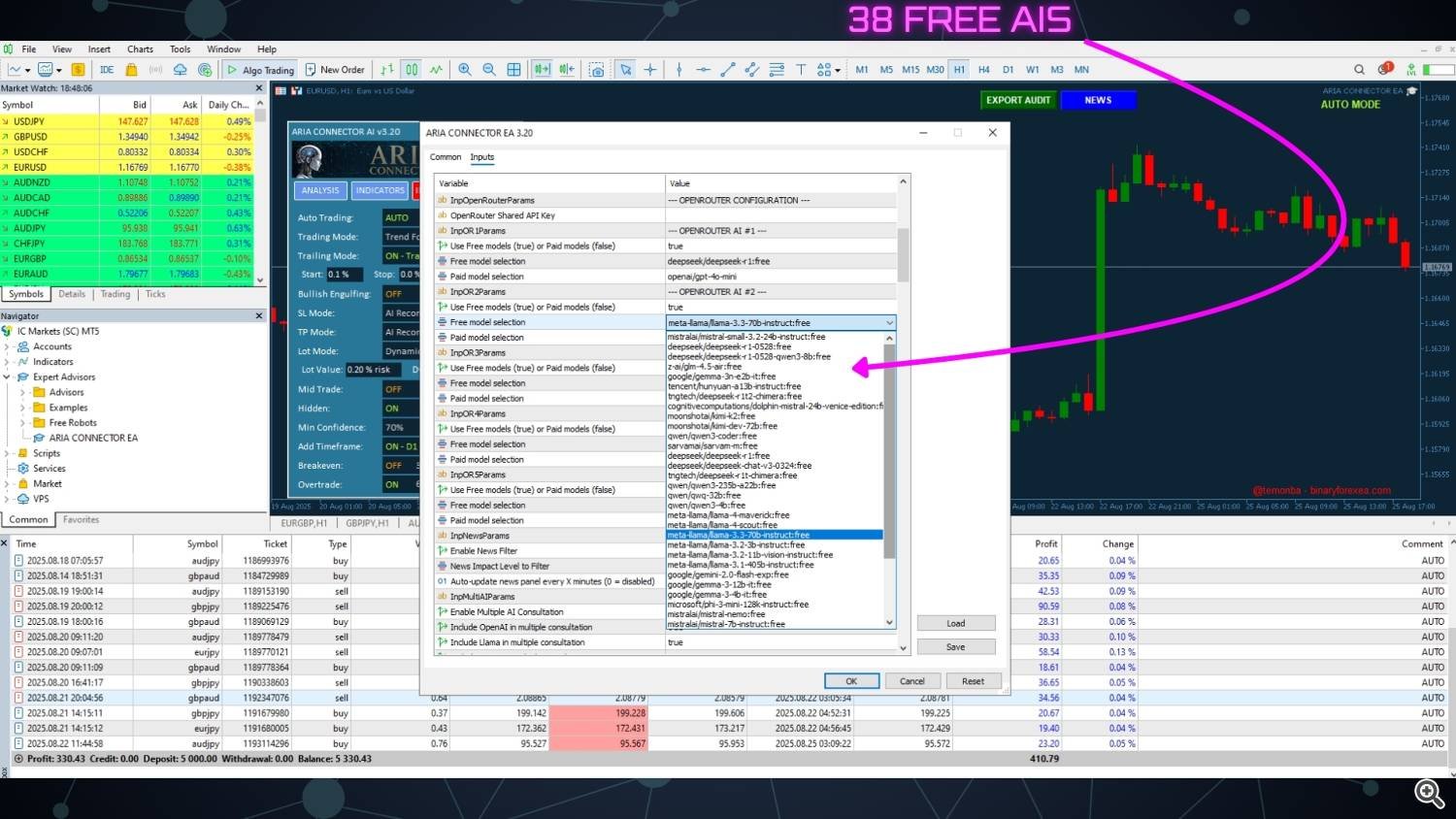 เราภูมิใจที่จะประกาศการเปิดตัว Aria Connector EA v3.2การอัปเดตที่ก้าวล้ำซึ่งใช้การซื้อขายอัจฉริยะไปอีกระดับ เวอร์ชันนี้แนะนำคุณสมบัติที่ได้รับการร้องขอมากที่สุดจากชุมชนของเรา: