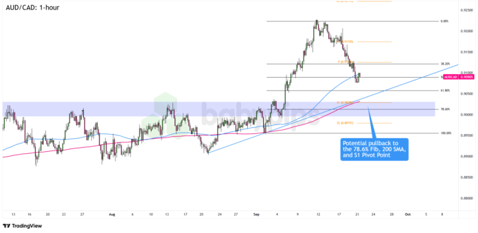 AUD/CAD กำลังสูดลมหายใจรอบ ๆ ที่จับ. 9100 ซึ่งอยู่ตรงที่ 100 SMA และ Fib 50% ของการแกว่งของเดือนกันยายน