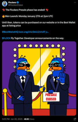 $FLOCK’s tokens can be found at itemizing value by way of its web site or the Greatest Pockets app till the official launch on Monday, January twenty seventh, at 2 PM UTC.