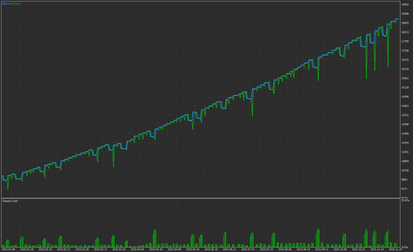 EA รักษาเส้นอิควิตี้ได้อย่างราบรื่นโดยมีการเบิกจ่ายต่ำ ซึ่งแสดงให้เห็นถึงความสามารถในการปรับตัวที่แข็งแกร่งกับโครงสร้างตลาด GBPJPY ตลอดปี 2025