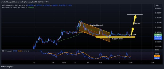The AIC/USDT on the 4-hour timeframe has been buying and selling inside a bearish channel, characterised by decrease highs and decrease lows, signaling a short-term downtrend. This downward motion continued all through late September into early October. Finally, the worth broke out of the channel, which frequently alerts a possible reversal.
