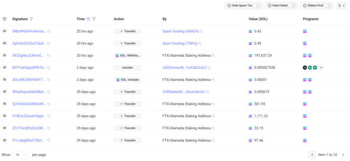Alameda Analysis ซึ่งเป็นบริษัทการค้าที่ล่มสลายซึ่งเชื่อมโยงกับการล้มละลายของ FTX ได้ยึดครอง Solana มากกว่า 197,000 Solana มูลค่า 17 ล้านดอลลาร์ และโอนเงินไปยังบัญชีล้มละลาย ตามข้อมูลจาก on-chain ข้อมูล.