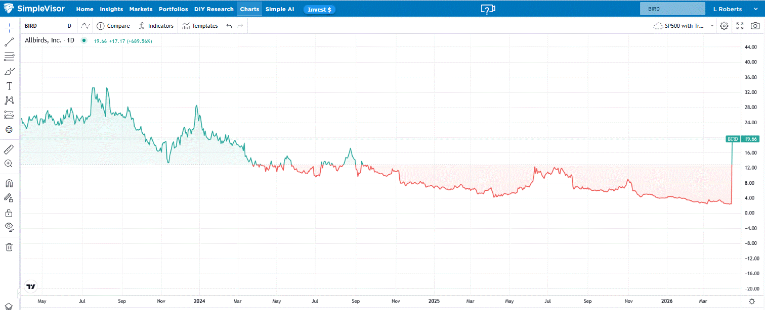 Allbirds บริษัทรองเท้าผ้าใบที่ยั่งยืน เพิ่งประสบกับความยากลำบาก โดยรายได้ลดลงมากกว่า 50% จากจุดสูงสุด เพื่อช่วยแก้ไขเรือ Allbirds จึงเปลี่ยนชื่อแบรนด์ตัวเองเป็น NewBird AI Allbirds ปิดร้านในสหรัฐฯ ทั้งหมดและขายทรัพย์สินทางปัญญาในราคา 39 ล้านดอลลาร์ พวกเขายังระดมทุน 50 ล้านดอลลาร์เพื่อพยายามแปลงเป็นบริษัทโครงสร้างพื้นฐานการประมวลผล AI ยังไม่ชัดเจนว่า 50 ล้านดอลลาร์จะช่วยพวกเขาได้อย่างไร เนื่องจากพวกเขากำลังแข่งขันกับบริษัทที่มีมูลค่าตลาดนับล้านล้านดอลลาร์ที่ใช้ AI หลายร้อยพันล้านดอลลาร์ แต่ราคาหุ้นซึ่งเพิ่มขึ้น 700% ในวันพุธ กลับให้เหตุผลเป็นอย่างอื่น