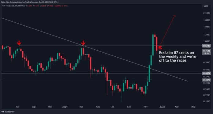 CRV is buying and selling for $0.77 at time of writing, down greater than 14% within the final 24 hours.