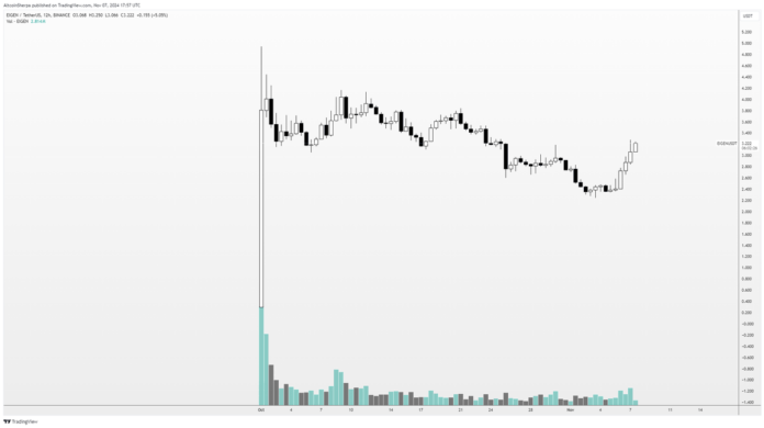 EIGEN is buying and selling for $3.15 at time of writing, up 7.6% within the final 24 hours.