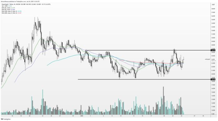 HYPE is buying and selling for $23.20 at time of writing, up 4.9% within the final 24 hours.