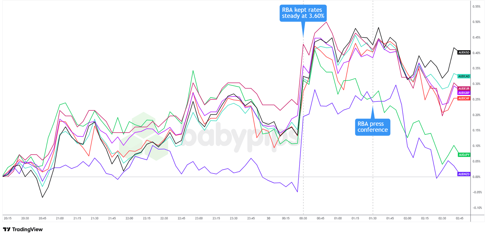 การได้รับทันทีที่สะท้อนให้เห็นถึงการลดอัตราการลดอัตราการลดลงของระยะสั้นหลังจาก RBA เน้นความเสี่ยงต่ออัตราเงินเฟ้อกลับหัวและปรับปรุงความต้องการภายในประเทศ ด้วยการส่งสัญญาณของธนาคารกลางที่ต้องการดูรายงาน CPI Q3 เต็มก่อนที่จะย้ายอีกครั้งตลาดผลักดันความคาดหวังกลับมาสำหรับการตัดครั้งต่อไปตั้งแต่เดือนกันยายนถึงพฤศจิกายนหรือใหม่กว่า