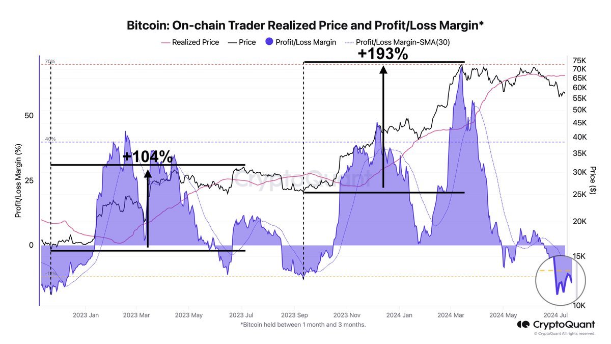 ตามข้อมูลจาก CryptoQuant อัตรากำไร/ขาดทุนในปัจจุบันอยู่ต่ำกว่าระดับ -12 ซึ่งหมายความว่าผู้ซื้อขายกำลังประสบกับการสูญเสียมากกว่ากำไรในตลาดในขณะนี้ จากประวัติศาสตร์แล้ว ระดับมีความสำคัญมากขึ้นโดยพิจารณาว่าค่าเมตริกเคยอยู่ต่ำกว่าระดับ -12 ในรอบที่ผ่านมา