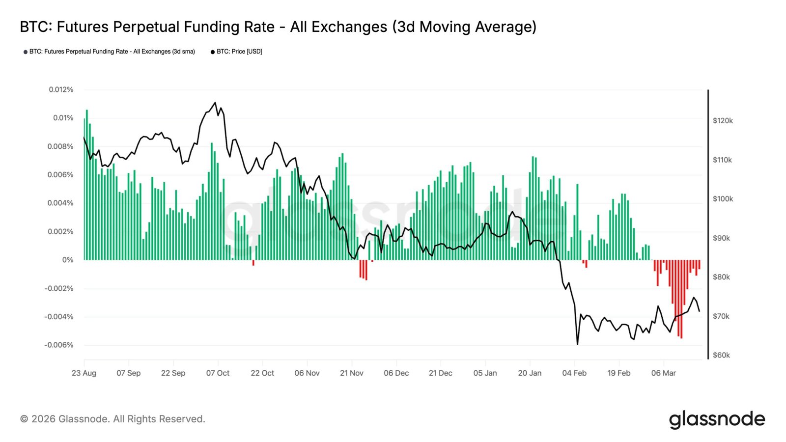 As highlighted by Glassnode analyst Chris Beamish in an X put up, the Bitcoin perpetual futures Funding Price has been destructive not too long ago. The “Funding Price” right here refers to an indicator that measures the quantity of periodic charge that merchants on the varied centralized derivatives exchanges are paying one another proper now.