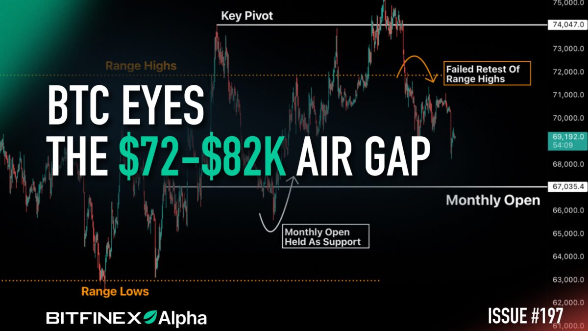 Final week was a recreation of two halves for BTC, because it rallied to a excessive of $76,000 on Tuesday solely to commerce all the way down to nearly $68,000 on Sunday because the market responded to PPI knowledge, Fed feedback and ongoing stress in West Asia. BTC, nevertheless, stays above its March open, in distinction to the volatility seen within the S&P500 index, with doubtlessly clear air above $72,000, if the market has adequate conviction to get there.