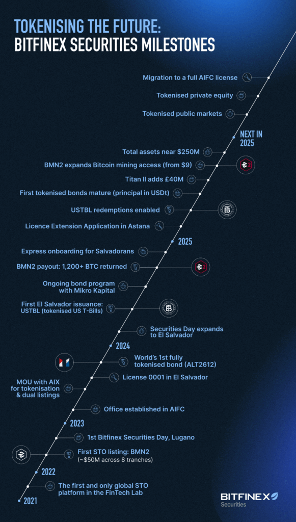Bitfinex Securities Approaches $250 Million Tokenised Securities Milestone and Units Out Plans to Attain Full Astana Worldwide Finance Centre Licence