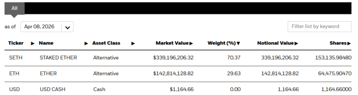 ณ วันที่ 8 เมษายน กองทุนมีสินทรัพย์ภายใต้การบริหารมูลค่ามากกว่า 435 ล้านดอลลาร์ โดยมี ETH เดิมพัน 339 ล้านดอลลาร์