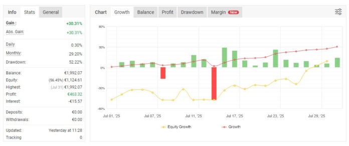 แม้จะมีการเปิดรับทุนที่หนักกว่า แต่กลยุทธ์ก็สิ้นสุดเดือนด้วยการเติบโตมากกว่า +30 % ซึ่งเป็นข้อพิสูจน์ถึง การควบคุมการสูญเสียที่ขับเคลื่อนด้วยตรรกะ–