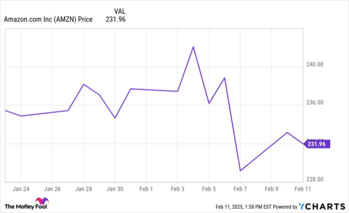 Round Jan. 24 was after I first began listening to chirps about DeepSeek and started seeing some headlines publish on monetary information programming. The chart reveals that shares of Amazon (AMZN -2.83%) clearly began to slip within the remaining days of January — as extra information about DeepSeek began to interrupt.