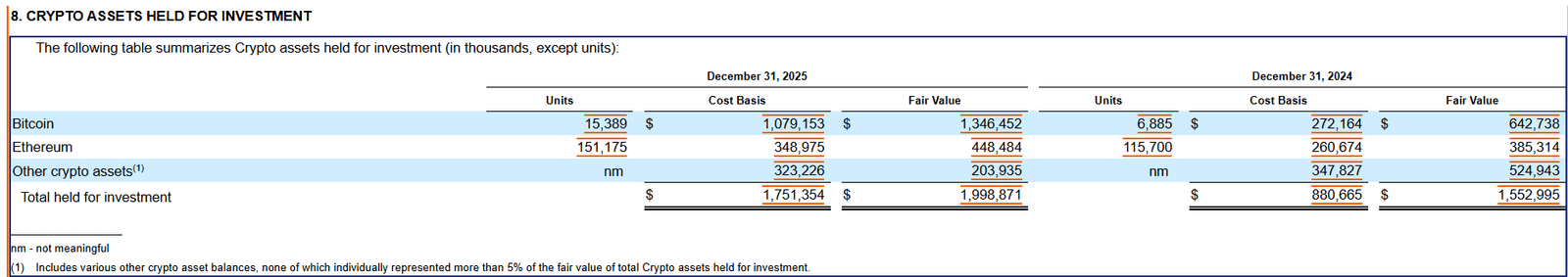 นอกจาก Bitcoin แล้ว Coinbase ยังเพิ่ม Ethereum ให้กับพอร์ตการลงทุนอีกด้วย บริษัทเข้าซื้อกิจการ 2,460 ETH ในไตรมาสที่ 4 เพิ่มมูลค่าสะสมเป็น 151,175 ETH มูลค่า 297 ล้านดอลลาร์
