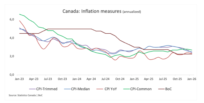 นักวิเคราะห์ยังคงไม่สบายใจเนื่องจากอัตราเงินเฟ้อยังคงสูงกว่าเป้าหมายของ BoC แม้ว่าจะแสดงให้เห็นการชะลอตัวลงบ้างในเดือนมกราคมก็ตาม ความเสี่ยงที่สหรัฐฯ เรียกเก็บภาษีจากราคาในประเทศยังคงถูกมองว่าเป็นการเพิ่มความไม่แน่นอนอีกชั้นหนึ่ง