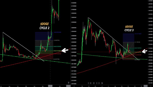Within the final cycle, this value motion is claimed to have occurred a number of instances simply earlier than a major upward development started. The crypto analyst revealed that the Dogecoin value is once more retesting the 0.382 Fibonacci degree. He added that this might imply upward ascent ought to begin quickly if historical past repeats itself.