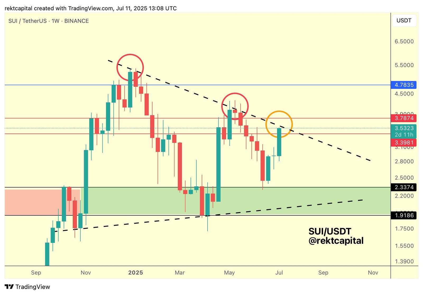 In a brand new technique session, pseudonymous crypto dealer Rekt Capital tells his 550,900 followers on the social media platform X that layer-1 blockchain SUI Community (SUI) is one weekly shut away from taking off.