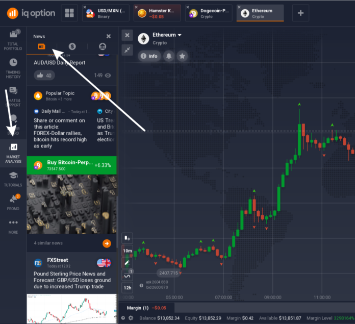 The market analysis section on IQ Option