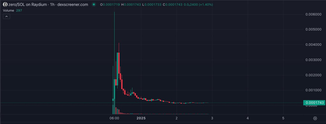 Siqi Chen launched ZERO on December 30, 2024, with a transparent warning: “This token goes to zero, and you’ll positively lose all of your cash. Don’t purchase it.” Regardless of this assertion, the token noticed an surprising pump, reaching a $6 million market worth inside hours.