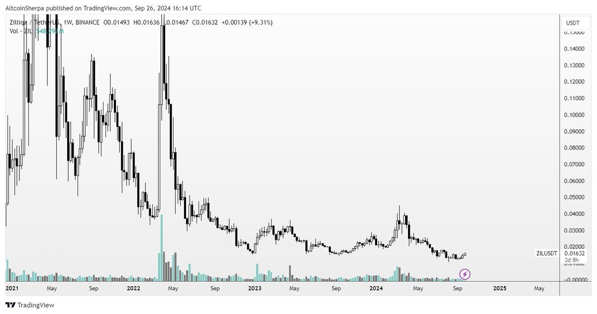 Pseudonymous analyst Altcoin Sherpa tells his 222,700 followers on the social media platform X that Zilliqa (ZIL) could proceed its breakout on the weekly chart.